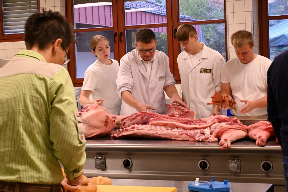 Ein Höhepunkt war der Besuch von Silvia Schneider und dem Team von „Silvia kocht“. Sie war aktiv am Geschehen beteiligt, begleitete die Zerlegearbeiten, stand mit den Lehrlingen am Herd und drehte eine Sendung direkt vor Ort. Frau Schneider besuchte auch den Standort der LBS Hollabrunn, wo sie sich ein Bild von der Ausbildung im Fleischerhandwerk machte.